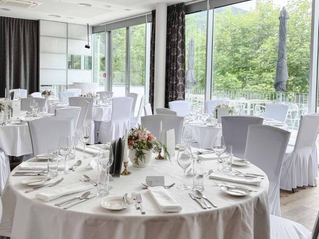 feiern Sie Ihre Hochzeit in einer ganz privaten Atmosphäre für bis zu 60 Gäste. Eine eigene Terrasse steht Ihnen zur Verfügung für ihre entspannte Agape im Grünen. Dort können Sie ihre Gäste mit einem Empfang im Freien verwöhnen. Wir freuen uns darauf, Ihnen den perfekten Rahmen für Ihre Hochzeit zu bieten!