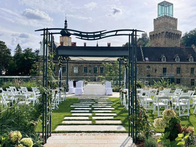 Zelebrieren Sie Ihre Trauung im Hochzeitsgarten vom  4*-Hotel "Das Schloss an der Eisenstrasse".