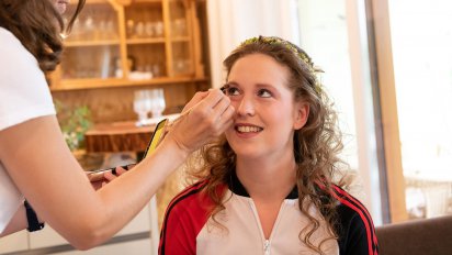 Am Tag der Hochzeit unbedingt professionelles Make-up von der Visagistin/ dem Visagisten Ihres Vertrauens auftragen lassen.