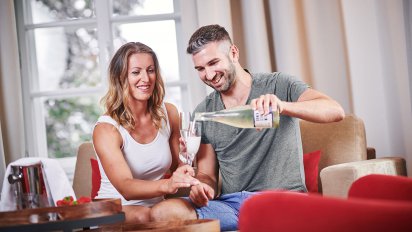 Wenn am Abend endlich Ruhe eingekehrt ist und ihr beide es euch auf der Couch gemütlich gemacht habt: Weg mit dem Handy! Social Media kann warten. Lieber gemeinsam einen Film oder eine Serie anschauen und schön dabei kuscheln. Am besten den Rotwein von oben oder ein anderes Lieblingsgetränk eurer Wahl dazu. Dann kommt die Romantik ganz von selbst.