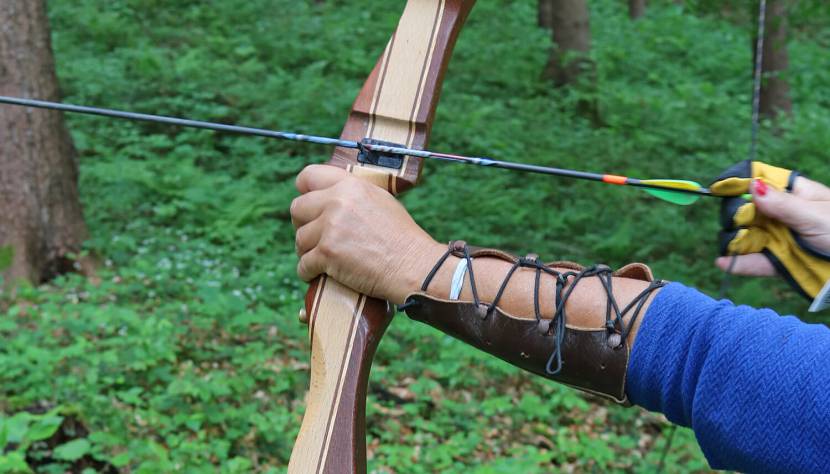 Kilian kann es nicht mehr abwarten und ist natürlich der erste Schütze. Er spannt den Pfeil ein, zielt und trifft! Fängt ja schon gut an, jetzt müssen wir natürlich nachziehen. Auch der erste Pfeil von Emma trifft. Mein erster Gedanke: "Oh, mein Gott, jetzt bin ich aber unter Zugzwang!"