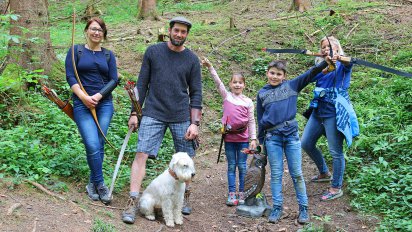 Obwohl wir alle so nahe wohnen und mein Halbbruder Chris, seine Frau Meli und die Kinder, Kilian und Emma, große Fans vom Bogenschießen sind, war ich die Einzige, die den Parcours am Buchenberg schon einmal absolviert hatte.
