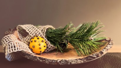 Die Mandarine mit Nelken zaubert einen Farbtupfer in die weihnachtliche Tischdekoration.