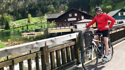 Johannes Scheiblauer vor der Radtour beim Hotel in Niederösterreich