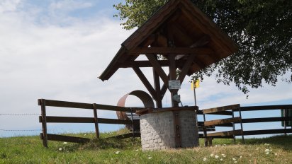 Nein, der Weg ist heute nicht das Ziel. Ich habe nämlich ein erklärtes Ziel, besser gesagt erklärte Ziele. Ich werde mich heute von einem flüssigen Genuss zum nächsten bewegen und freue mich bereits jetzt über die überraschten Gesichter meiner Besucher beim ersten Rastpunkt. Wir sind Richtung Diensbergsattel unterwegs und hier wartet der erste Mostbrunnen, der in seiner dunklen Tiefe Most-, Sturm-und Apfelsaftflaschen kühlt. Jetzt heißt es einmal kurbeln, einen kleinen Beitrag in die Kasse werfen und die Säfte oder Moste genießen. Obwohl ich es ja schon gewusst habe, was auf der Lichtung zu finden sein wird, bleibt es trotzdem ein beschwingtes Gefühl inmitten der Natur, den Brunnen zu finden und sich irgendwie wie in einer alten Kindergeschichte etwas nehmen zu dürfen.Warum ein Brunnen?