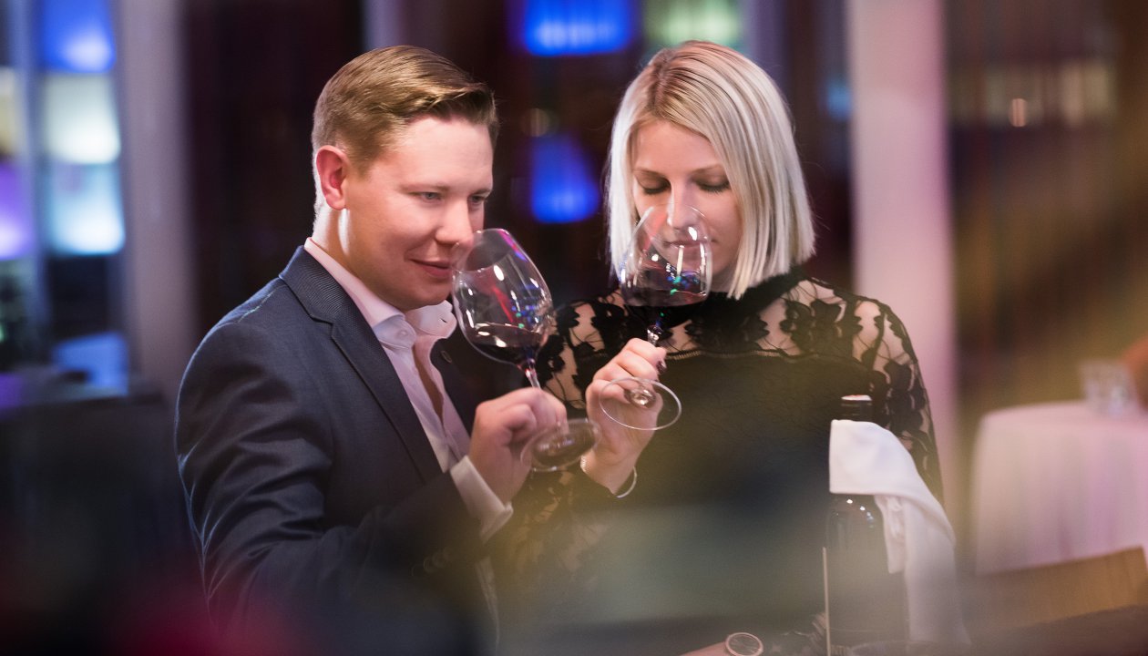 Die Weinverkostung wird von Filia Solis am Piano begleitet.